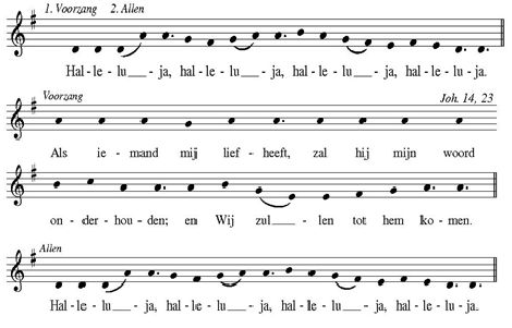 Ik gebruik hierbij ook veel het Alleluiarium van Jan Bohmer, bijna voor iedere zondag een aparte tekst, met soms meestemmige Allelua's.